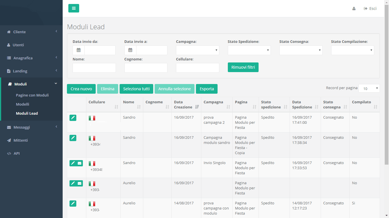 Vuoi comunicare con i tuoi clienti? Utilizza la nostra piattaforma integrata con le anagrafiche aziendali per le tue campagne promozionale sms. Tasso di apertura oltre il 90%!